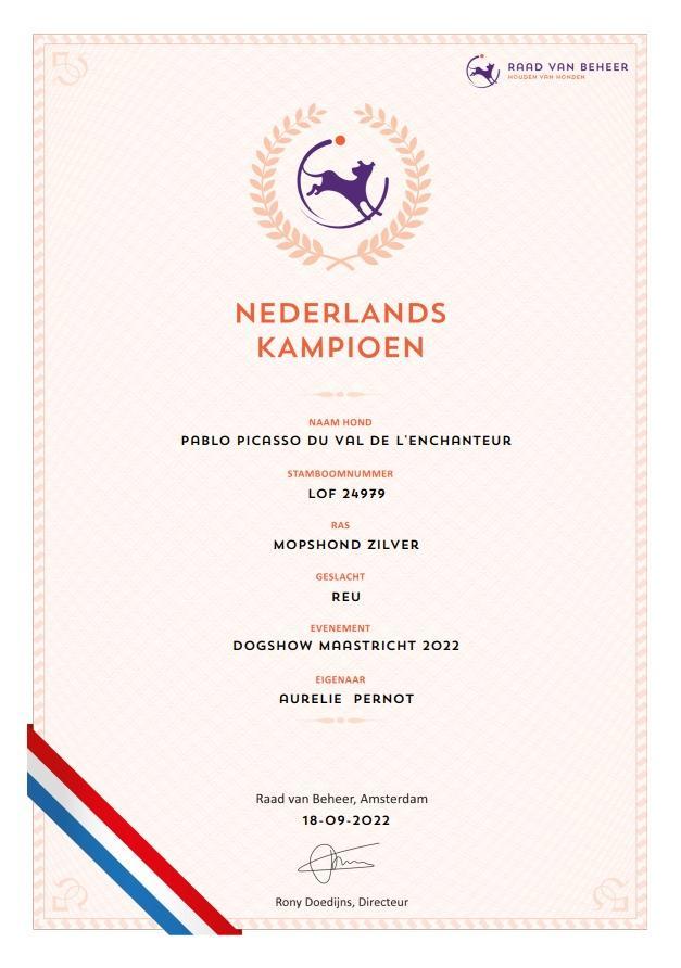 Pour le lot d affixe, CH Tender Love du Val de l'enchanteur, CH Sakura du Val de l'enchanteur, CH The dark crystal du Val de l'enchanteur et en remplaçant CH Ume no Hana du Val de l'enchanteur