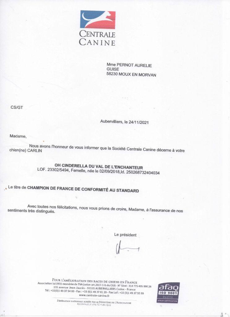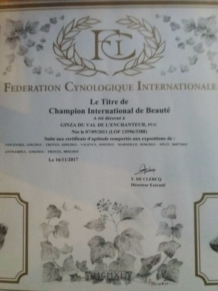 GINZA du Val de l'enchanteur 1er Excellent CIF , CACS ,CACIB , Meilleur de race.