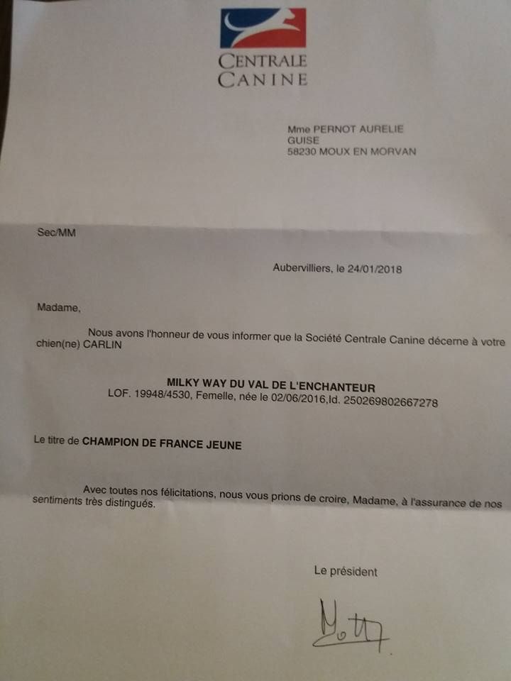 Ginza du Val de l'Enchanteur remporte les 4 CAC-HR lui pertmettant d'accéder au titre de Championne de Croatie